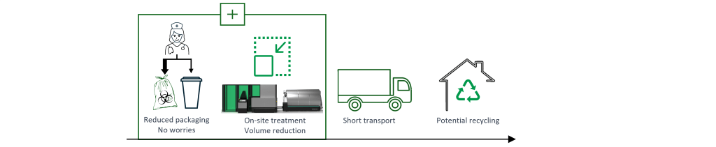 Ordinary infectious waste handling requires waste to be treated outside the hospital, often at a distant incineration plant. Downsides include: